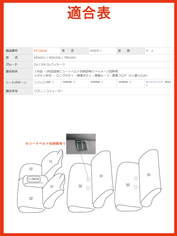 レジアスエースバン/H28.6〜/KDH,TRH200系/2列目・3列目座面にシートベルト収納部有り/9人乗り/トヨタ/クラッツィオ クロス シートカバー/レッド×ブラック,ブルー×ブラック,ホワイト×ブラック/clazzio クラッチオ/ET-1632