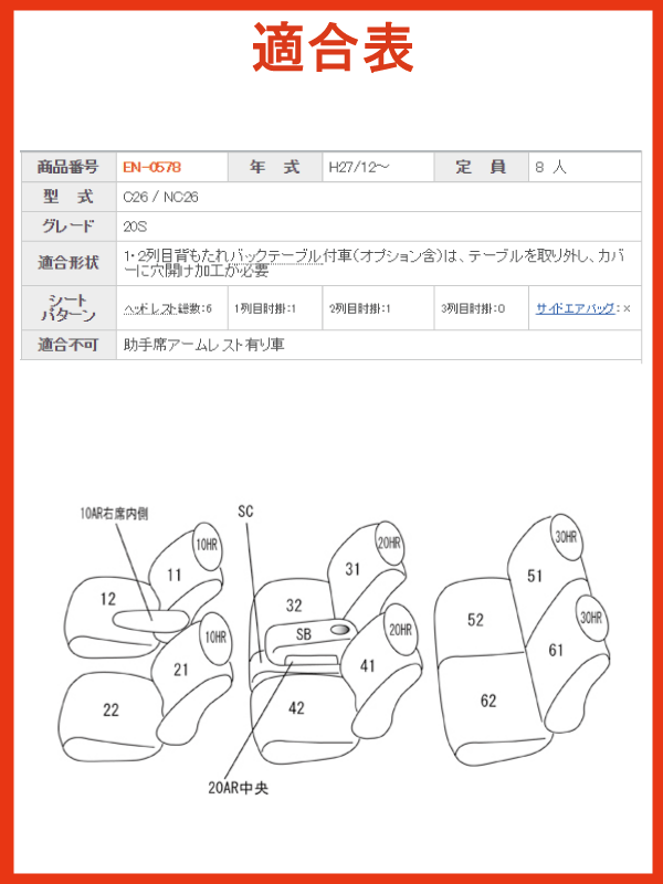 セレナ/H27.12〜/C26,NC26/20S/助手席アームレストなし/日産/クラッツィオ クロス シートカバー/レッド×ブラック,ブルー×ブラック,ホワイト×ブラック/clazzio クラッチオ/EN-0578