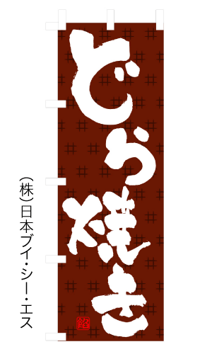 3290 のぼり旗 どら焼き 茶色地(ブラウン) 白文字(ホワイト) 素材:ポリエステル サイズ:W600mm×H1800mm