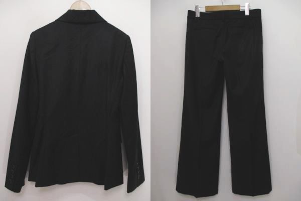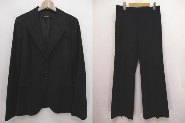 ダナキャランニューヨーク DKNY セットアップ スーツ ジャケット パンツ ロング丈 4 黒系 ブラック ストライプ柄 裏地 ボタン ジップフライ 毛 ウール混 レディース 【中古】【ベクトル 古着】 180626 ベクトル店